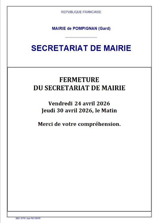 Vous êtes ici : Accueil > FERMETURE SECRETARIAT MAIRIE